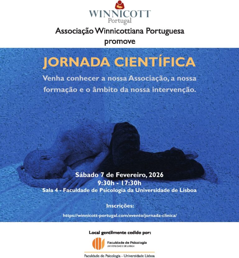 Programa da Jornada Científica da Associação Winnicottiana Portuguesa Dia 7 de Fevereiro, 2026 Faculdade de Psicologia de Lisboa Sala 4 9h30 – Receção aos colegas 10h – Sessão de Abertura: Conversa informal sobre o nascimento da Associação Winnicottiana Portuguesa, com Rosário Belo, Joana Espírito Santo e Diogo Gonçalves – Uma conversa improvisada com direito a perguntas por parte dos participantes. 11h – Coffee Break “A CRIANÇA COMO SUJEITO: REFLEXÕES DE FRANÇOISE DOLTO NA EDUCAÇÃO ATUAL”, de Sílvia Coutinho Leitura e debate “A MANEIRA COMO NOS FAZEMOS GENTE” – DEPRESSÃO E O PROCESSO DE AMADURECIMENTO”, de…